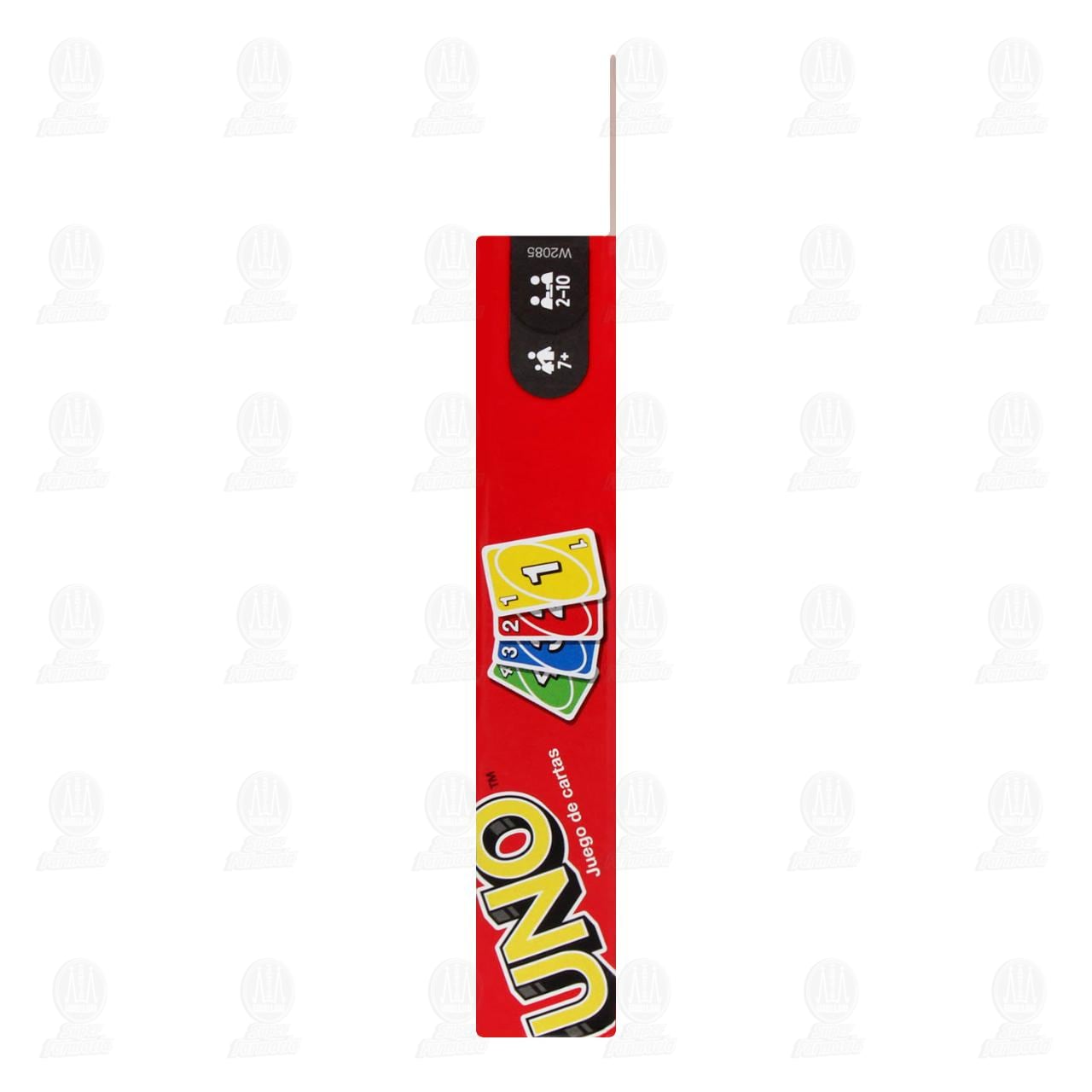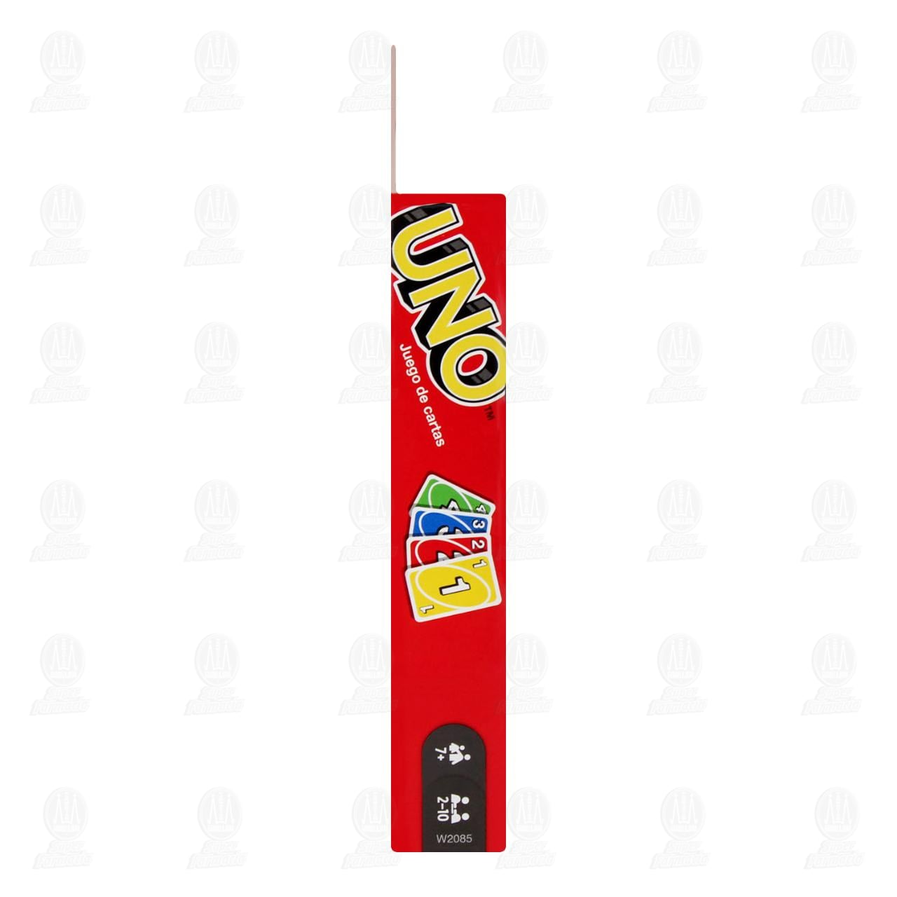 Juego de mesa UNO de Mattel, el clásico juego de cartas en el que el objetivo es ser el primero en deshacerte de todas tus cartas haciendo coincidir colores o números. Contiene 1 pieza (112 cartas).