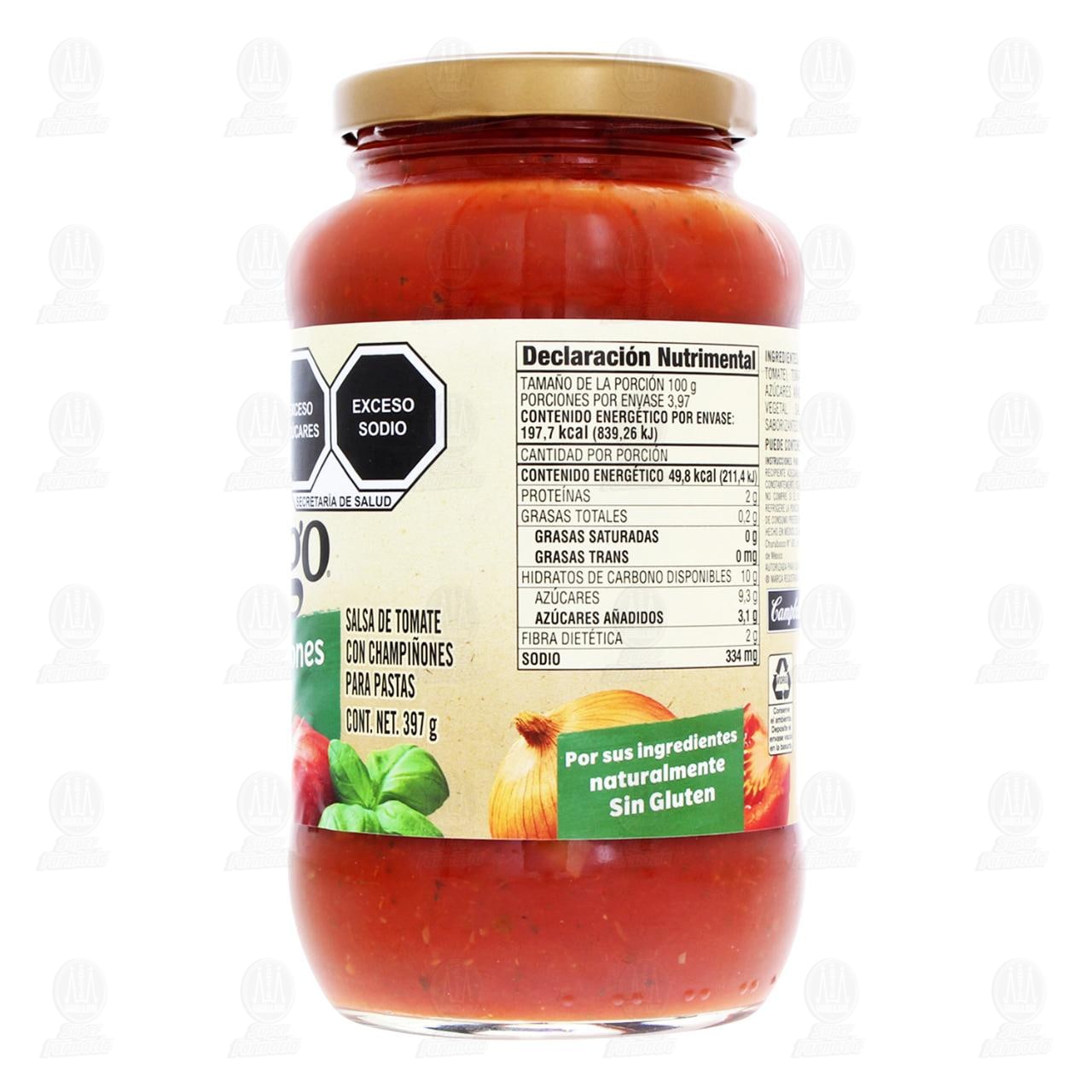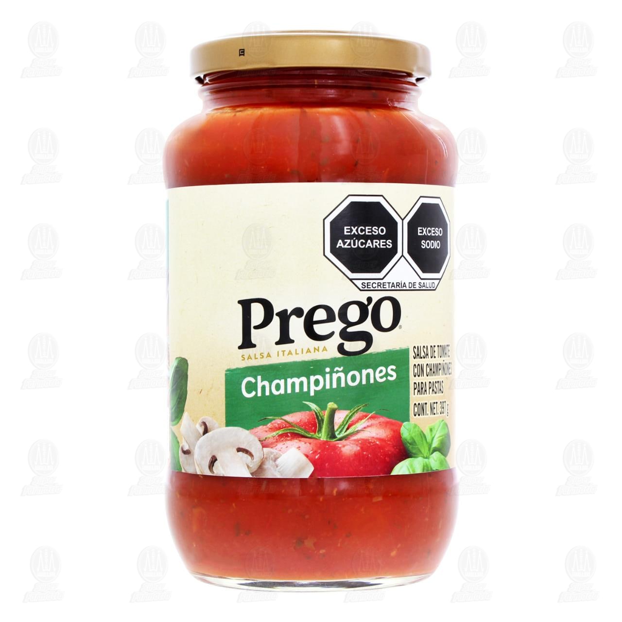 Salsa de tomate italiana Prego con champiñones para pastas. Contiene 397 gramos.