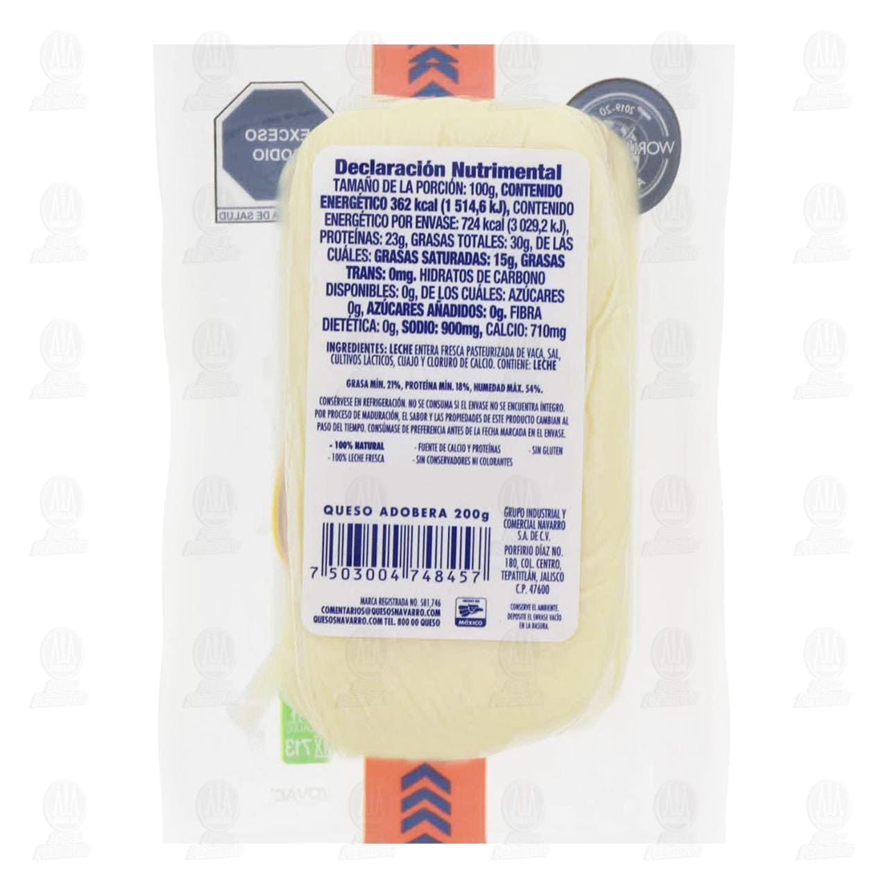 Queso adobera Navarro, 100% natural de leche fresca, fuente de calcio y proteínas. Contiene 200 gramos.