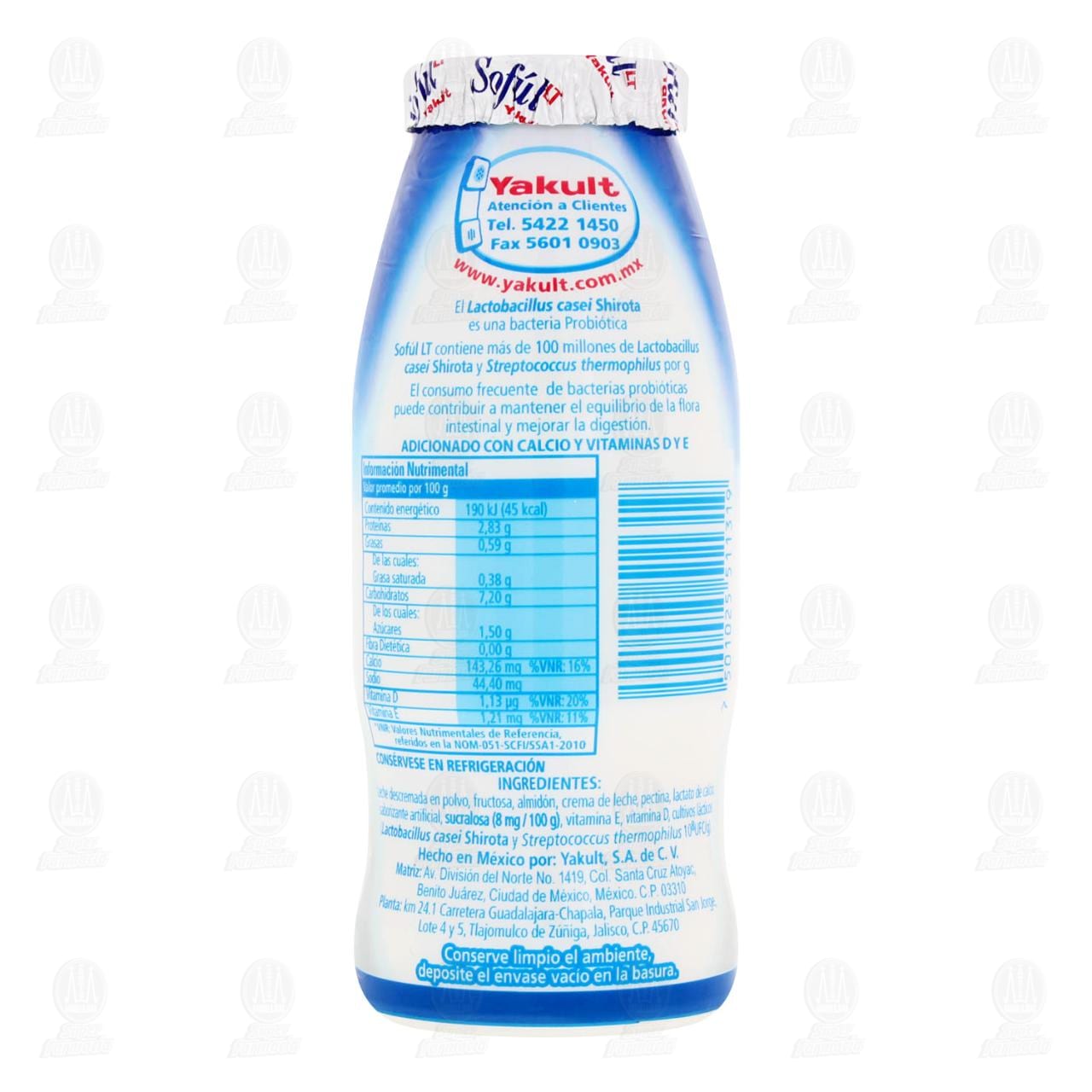 Alimento lácteo fermentado Sofúl LT Yakult para beber, sabor natural con lactobacillus casei Shirota, bacteria probiótica exclusiva de Yakult, la cual en cantidades suficientes y consumo diario contribuye a una buena digestión, 200 ml.
