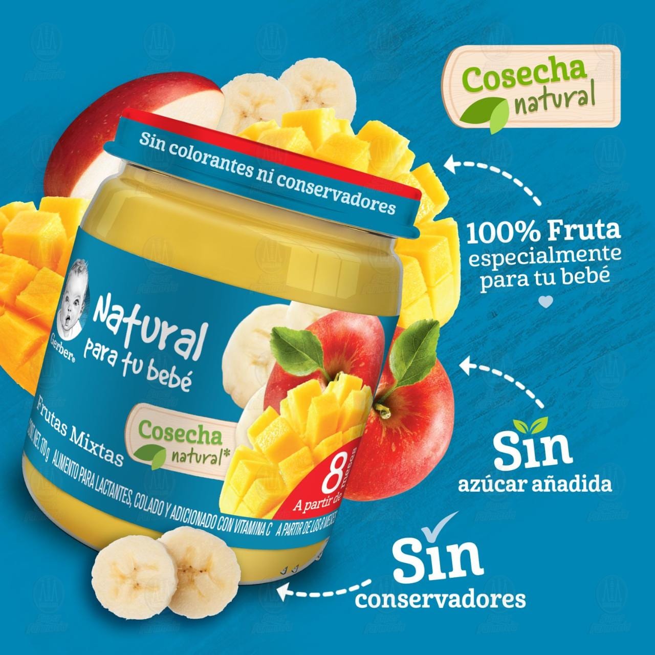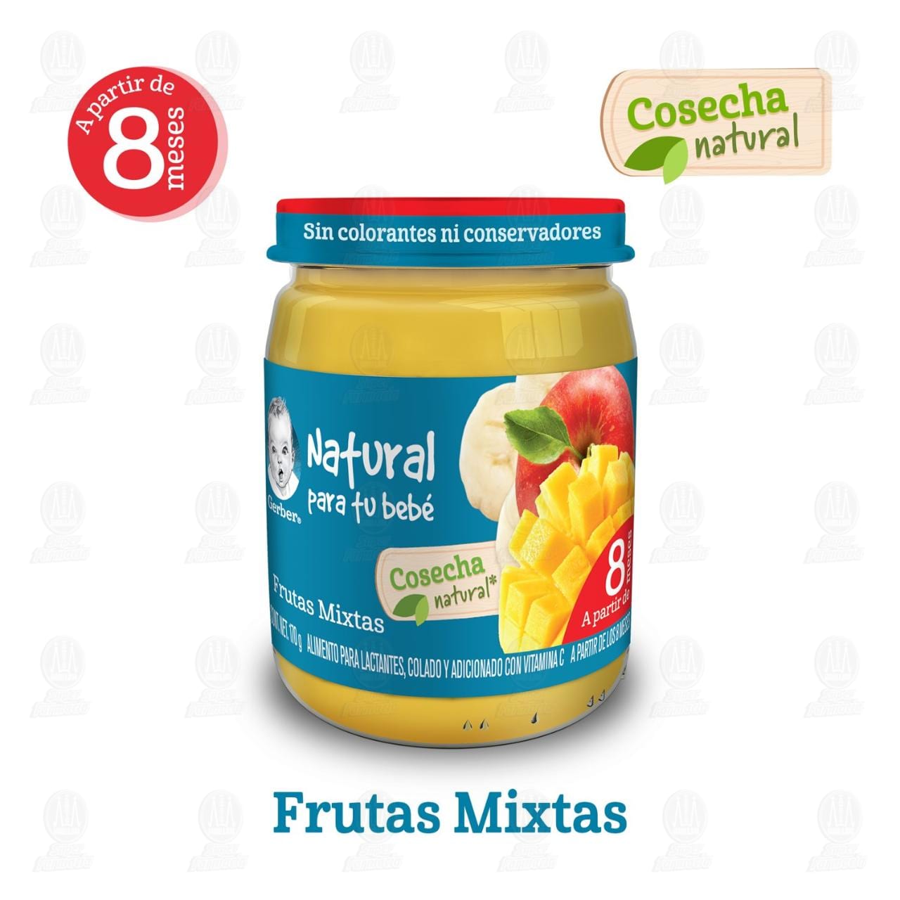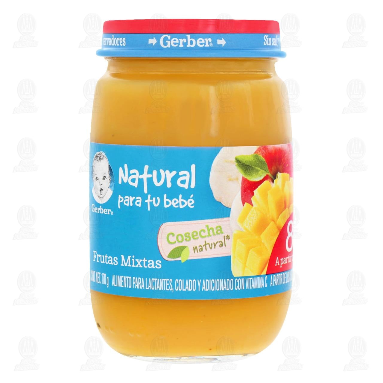 Papilla Gerber Cosecha Natural Etapa 3 Frutas Mixtas, alimento para bebé de 8 meses en adelante fortificado con vitamina C y Hierro para un sano desarrollo. Frasco con 170 gramos.
