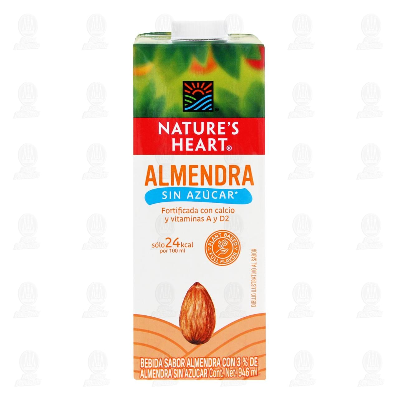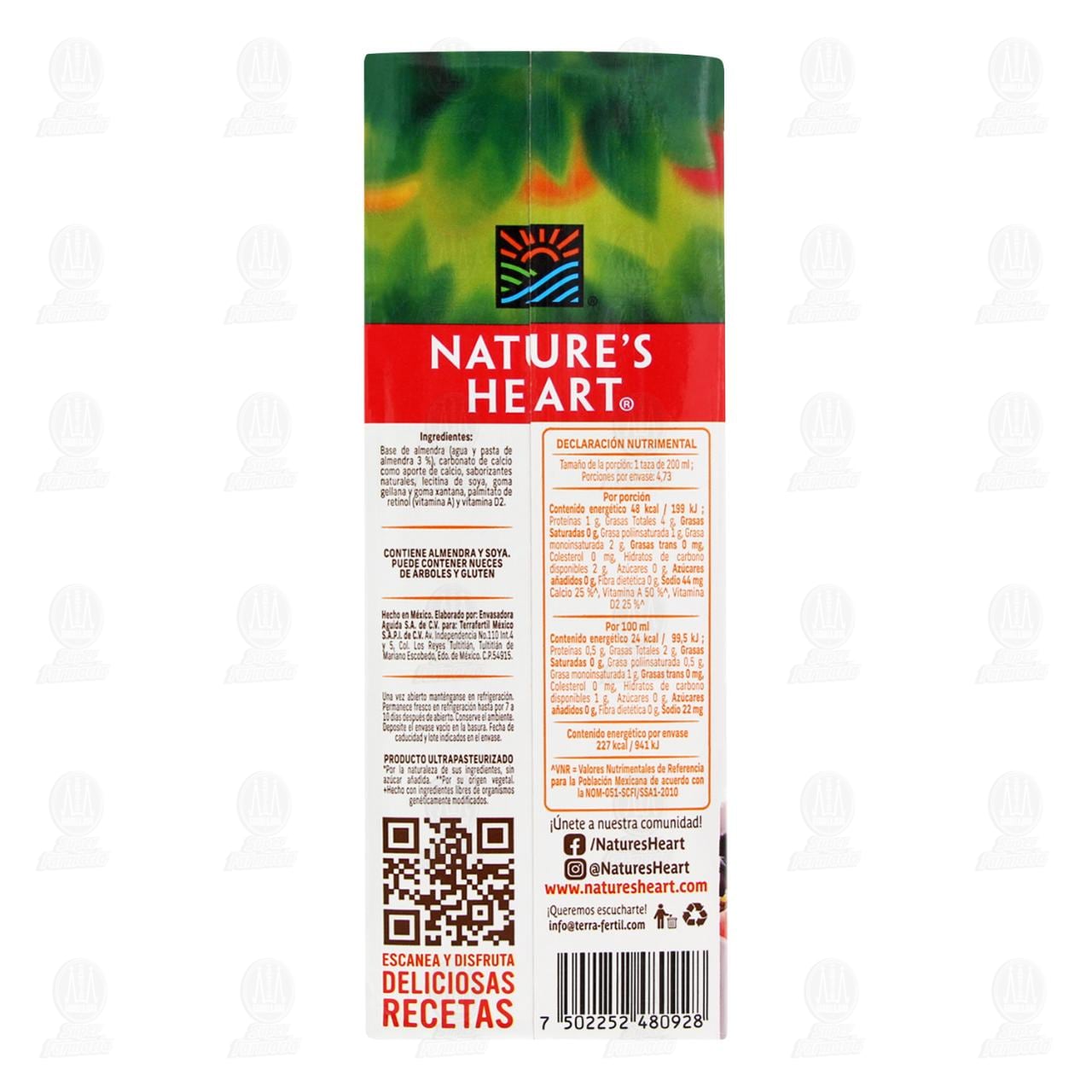 Nature's Heart Bebida Sabor Almendra Sin Azúcar Fortificada con calcio y vitaminas A y D2. Envase con 946 mililitros.