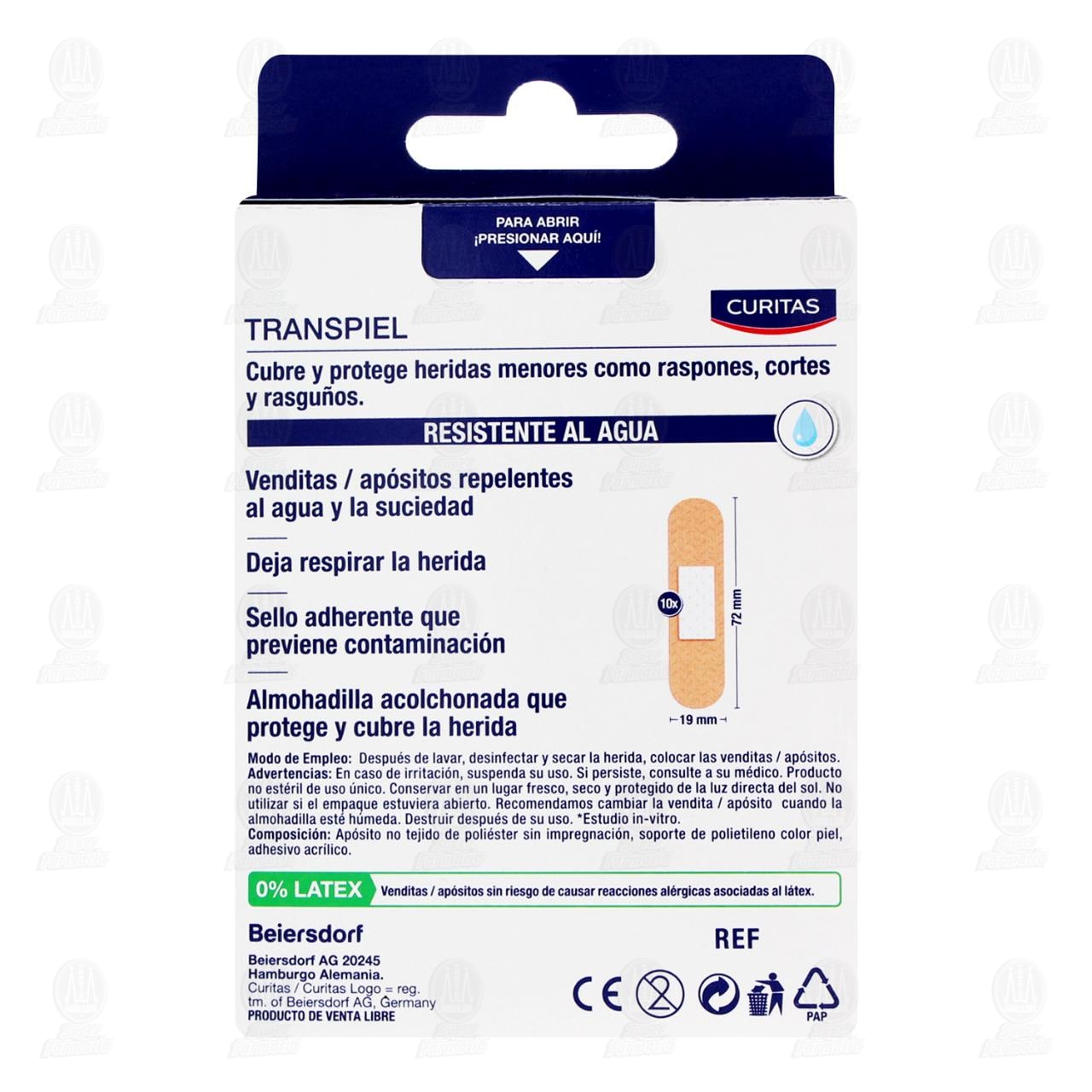 Banditas Adhesivas Curitas Transpiel ayudarán a proteger las heridas menores de bacterias y suciedad. Su almohadilla antiadherente y acolchonada protege las heridas para que los pequeños accidentes se olviden rápidamente. Caja con 10 piezas.