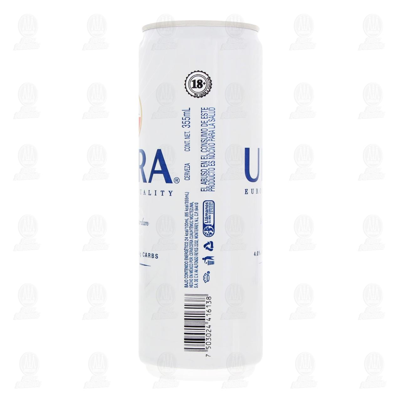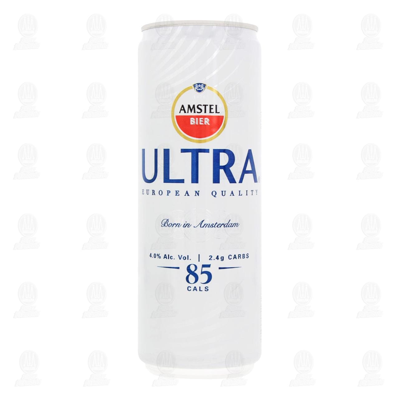 Cerveza Amstel Ultra, calidad Europea. Lata de 355 mililitros con 4.0% volumen de alcohol.