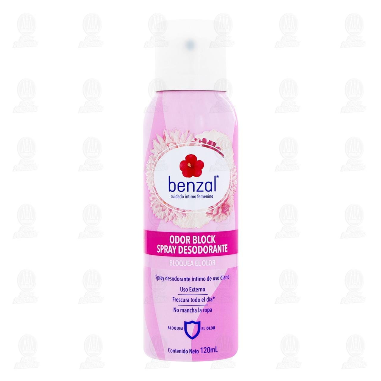 Desodorante Íntimo Benzal Odor Block en Spray, agradable aroma que te hará sentir limpia, fresca y femenina a cualquier hora y en cualquier lugar, protección todo el día. Envase con 120 mililitros.