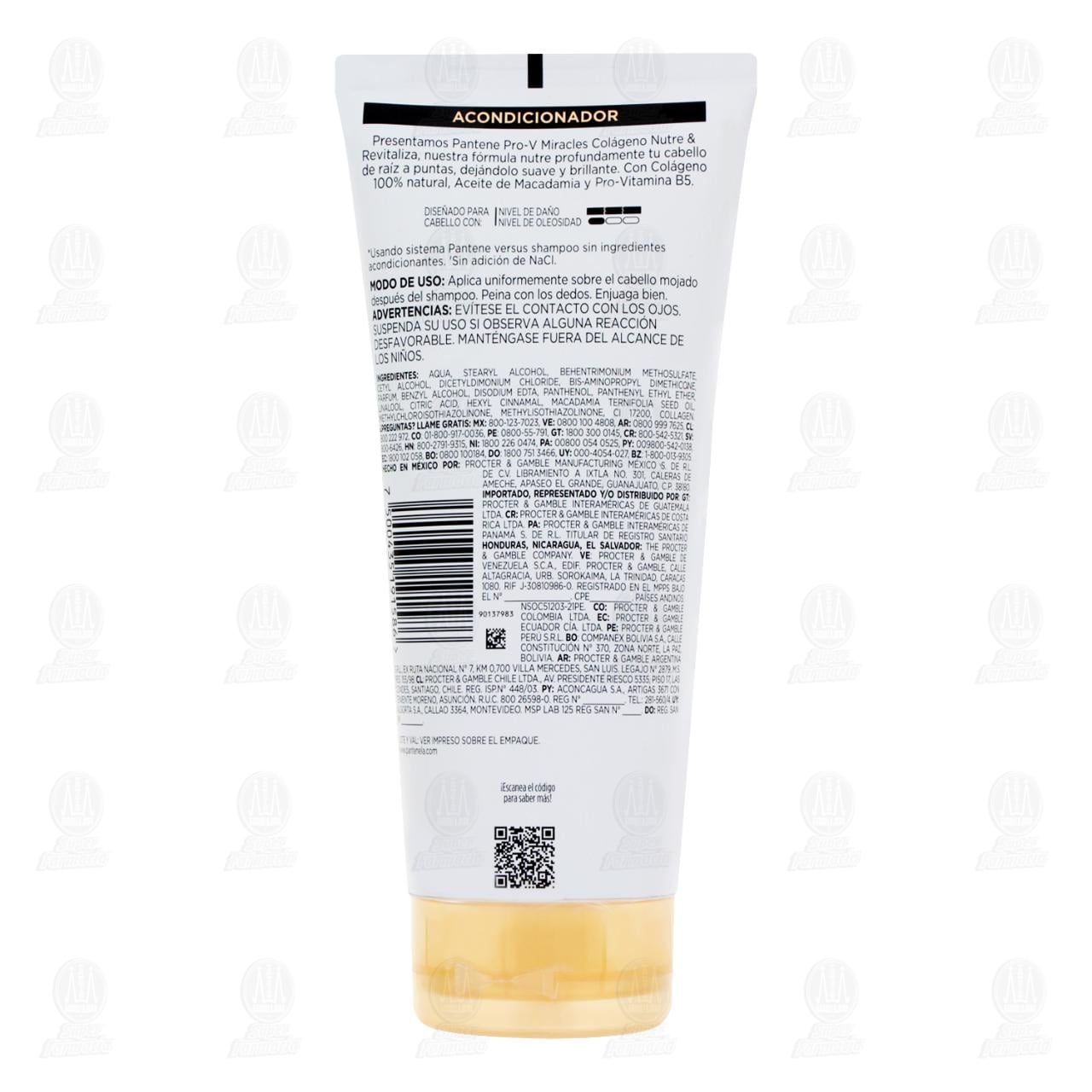 Acondicionador Pantene Pro-V Miracles Colágeno, nutrición profunda controla el friz. Colágeno natural + aceite de macadamia + pro - vitaminas B5. Envase con 250 mililitros.