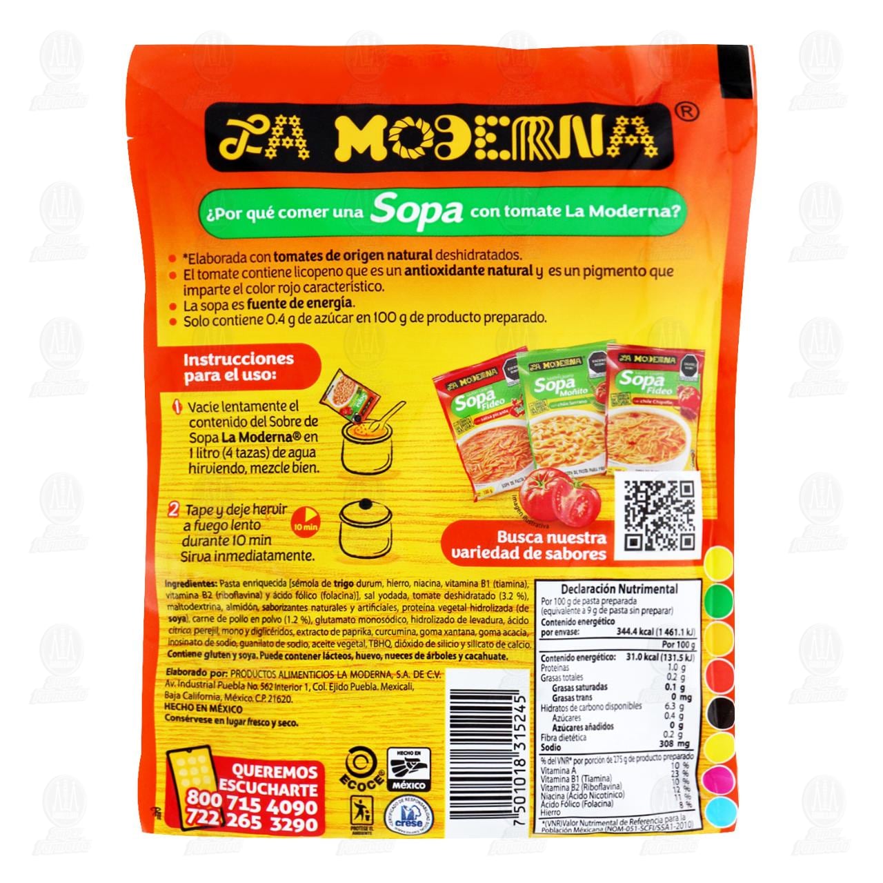 Sopa La Moderna Codo con Tomate y Pollo. Sobre con 100 gramos.