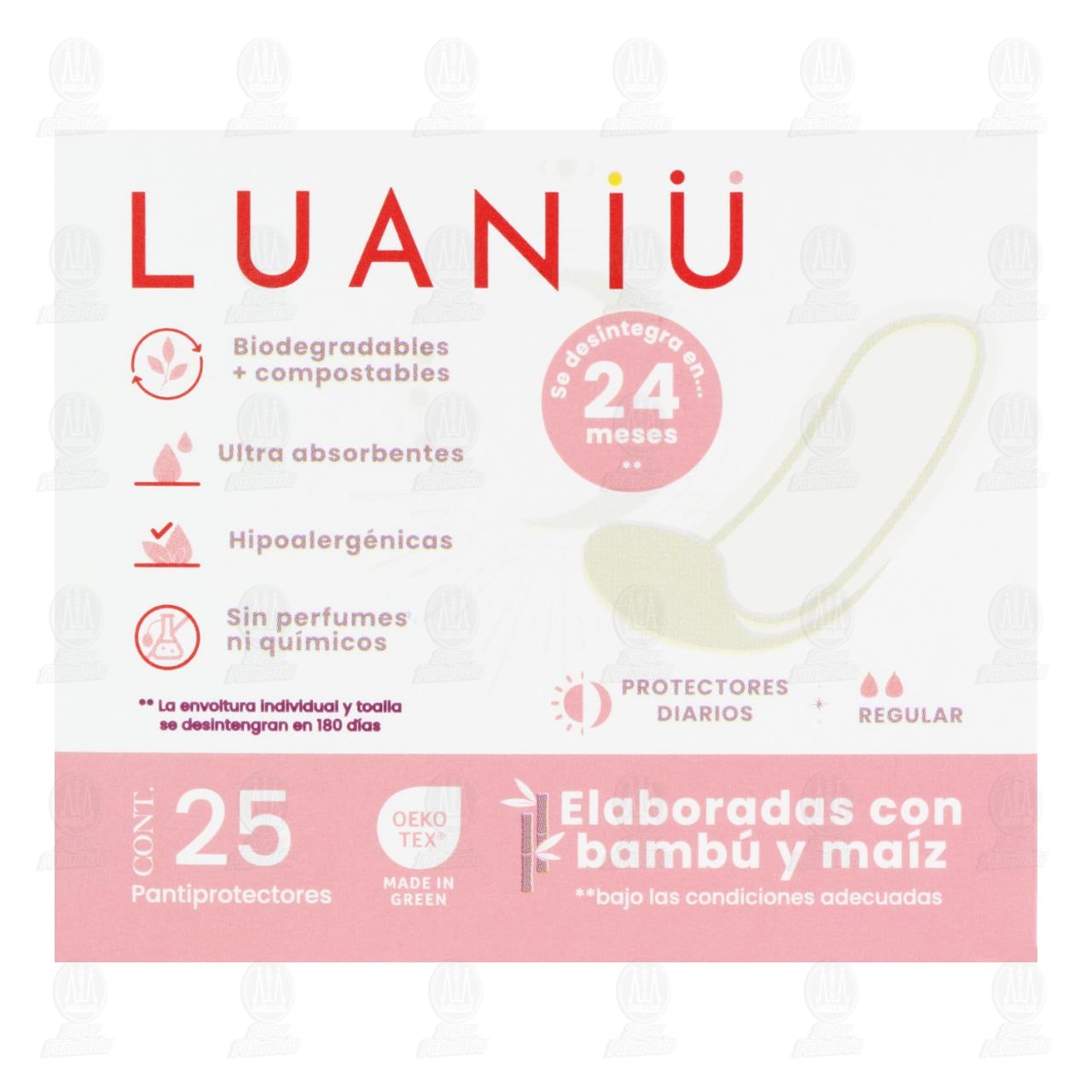 Pantiprotectores Luaniü diarios regulares sin perfumes ni químicos, Elaboradas con bambú y maíz. Paquete con 25 Pantiprotectores.