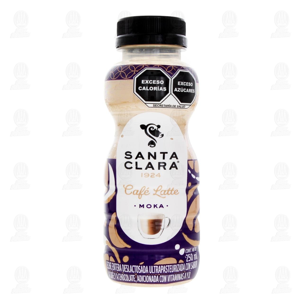 Leche Entera Santa Clara deslactosada ultrapasteurizada con sabor a café y a chocolate moka, Adicionada con vitaminas A y D. Envase con 250 mililitros.