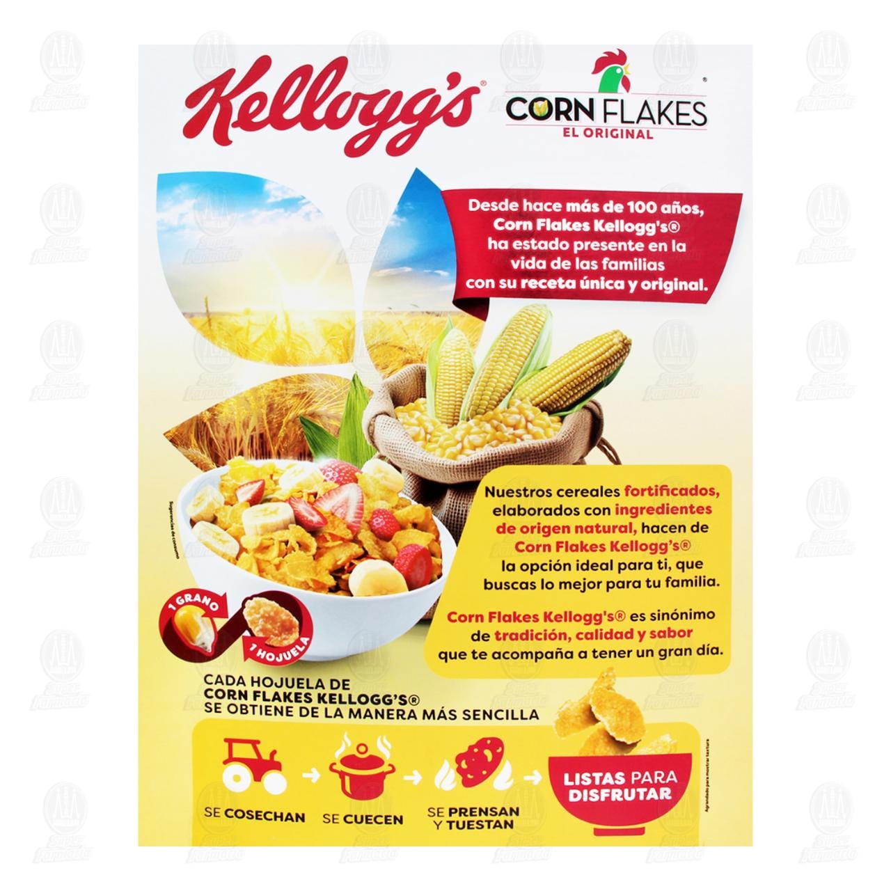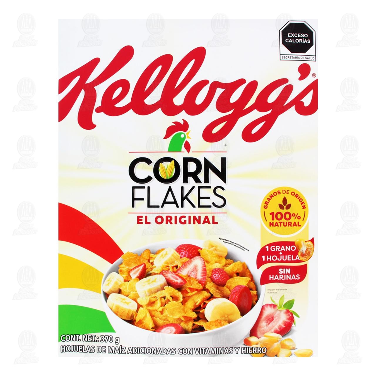 Cereal Kellogg's Corn Flakes el original, Hojuelas de maíz adicionadas con vitaminas y hierro con granos de origen 100% natural. Contiene 370 gramos.
