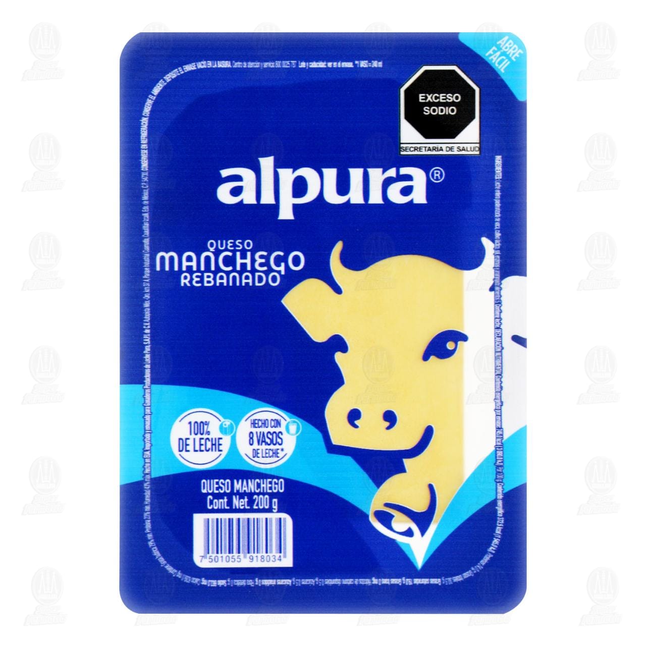 Queso Manchego Alpura rebanado, ideal para acompañar tus alimentos y botanas. Contiene 200 gramos.