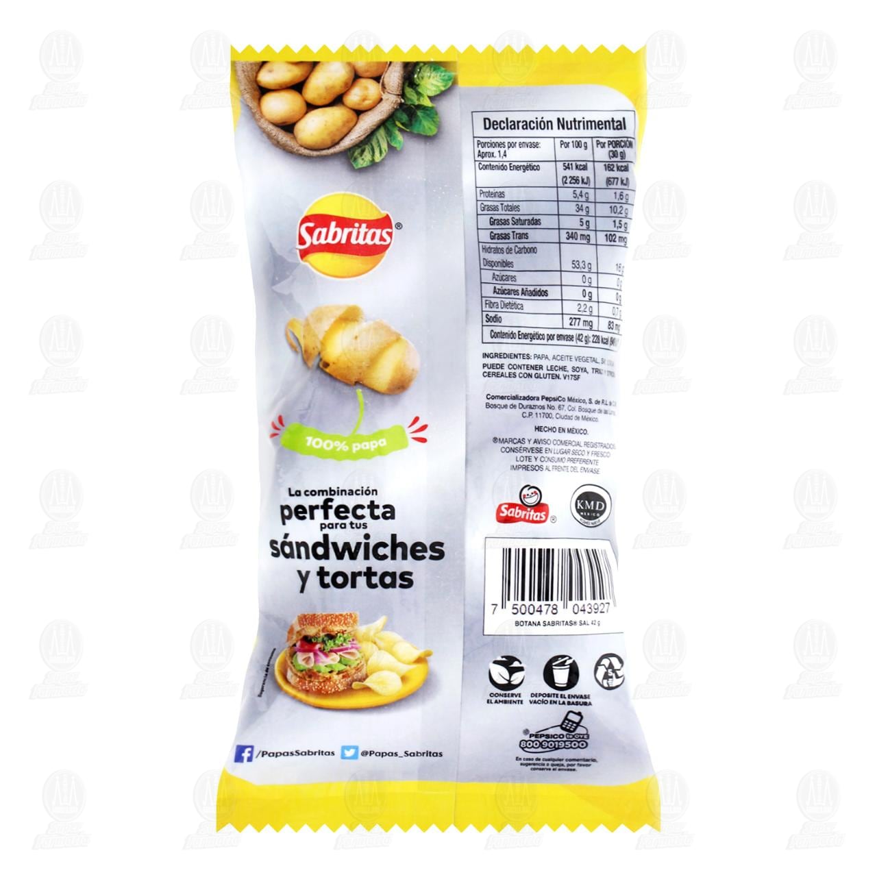 Papas Sabritas original fritas con sal. Paquete con 42 gramos.