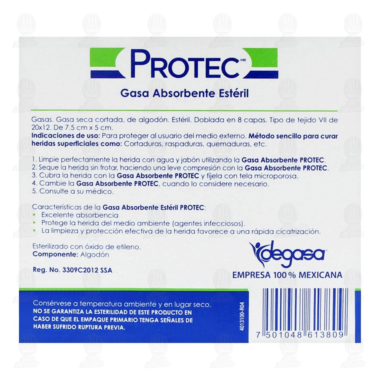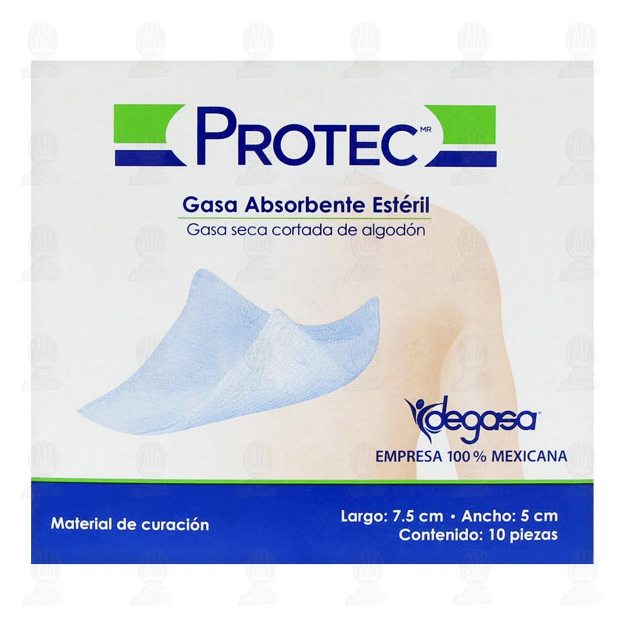 Gasa Absorbente de Algodón Protec, Estéril, Doblada en 8 capas, Tamaño (7.5 cm x 5 cm) para Proteger y Curar Heridas Superficiales del Medio Ambiente como Cortaduras, Raspaduras y Quemaduras. Contiene 10 piezas.