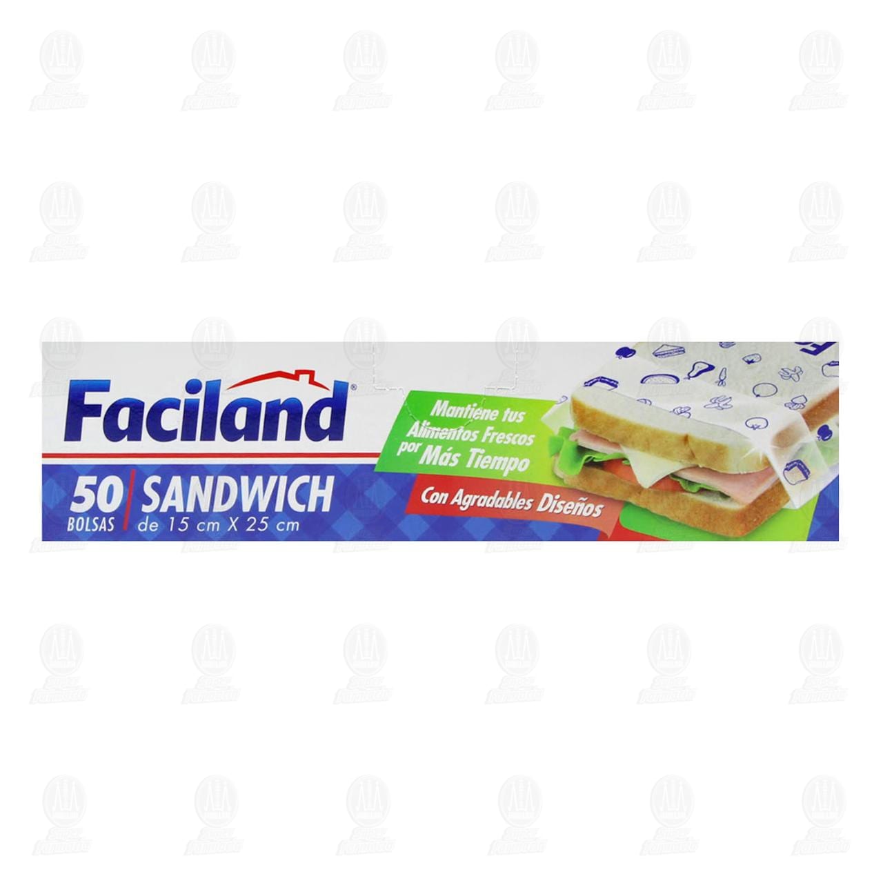 Bolsas Faciland con agradables diseños para sándwich, mantiene tus alimentos frescos por más tiempo. Paquete con 50 piezas de 15 x 25 centímetros cada una.