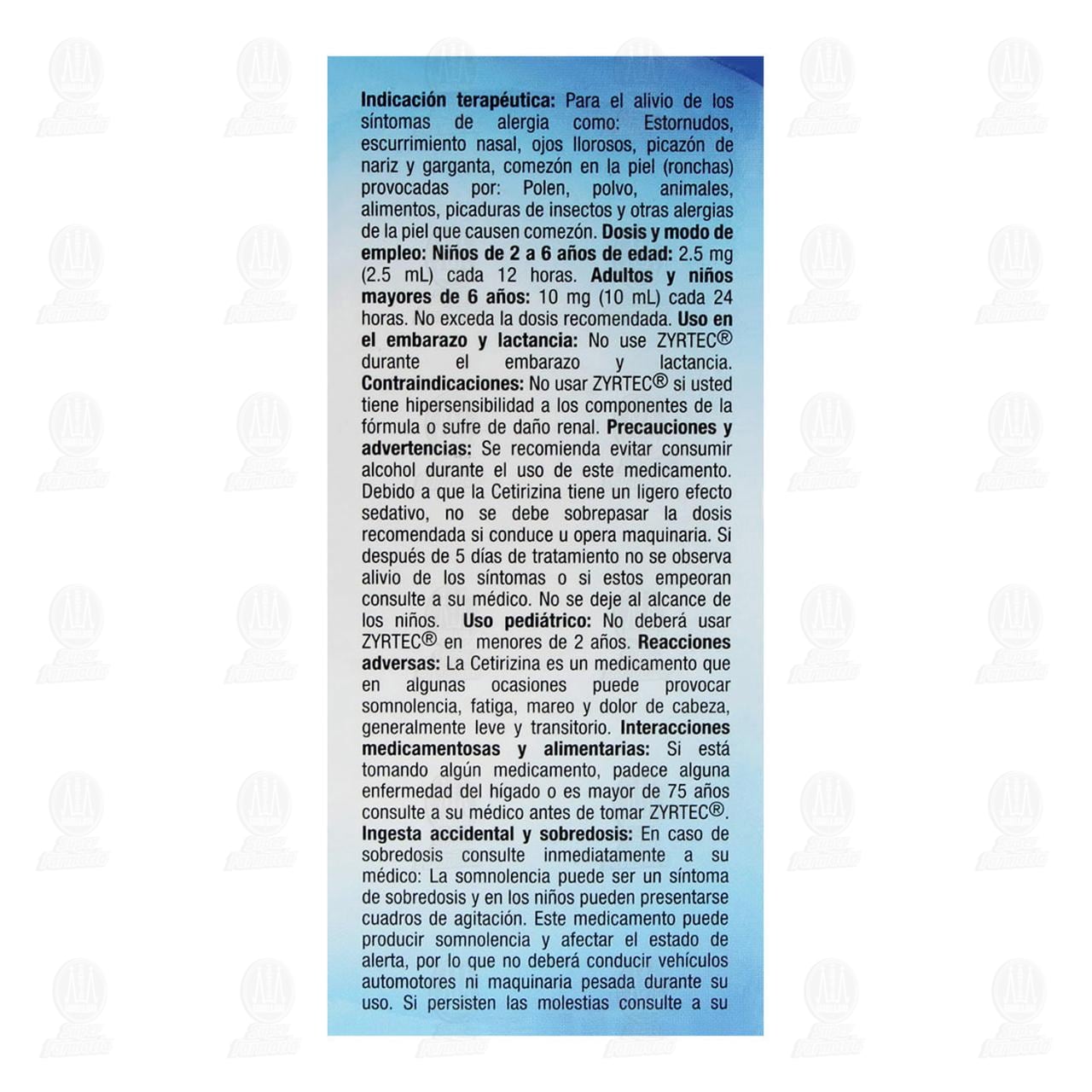 Zyrtec 5mg/5ml Solución Infantil. Frasco con 100 mililitros (Cetirizina)