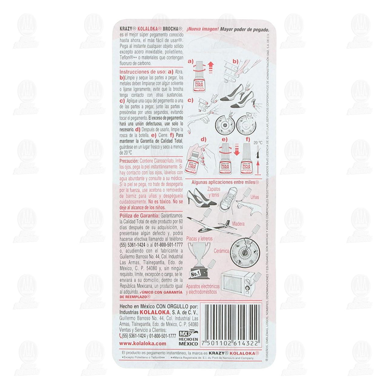 Pegamento instantáneo Kola Loka Krazy en brocha, pega en 30 segundos, abrillanta, pega y endurece uñas. Contiene 5 gramos.