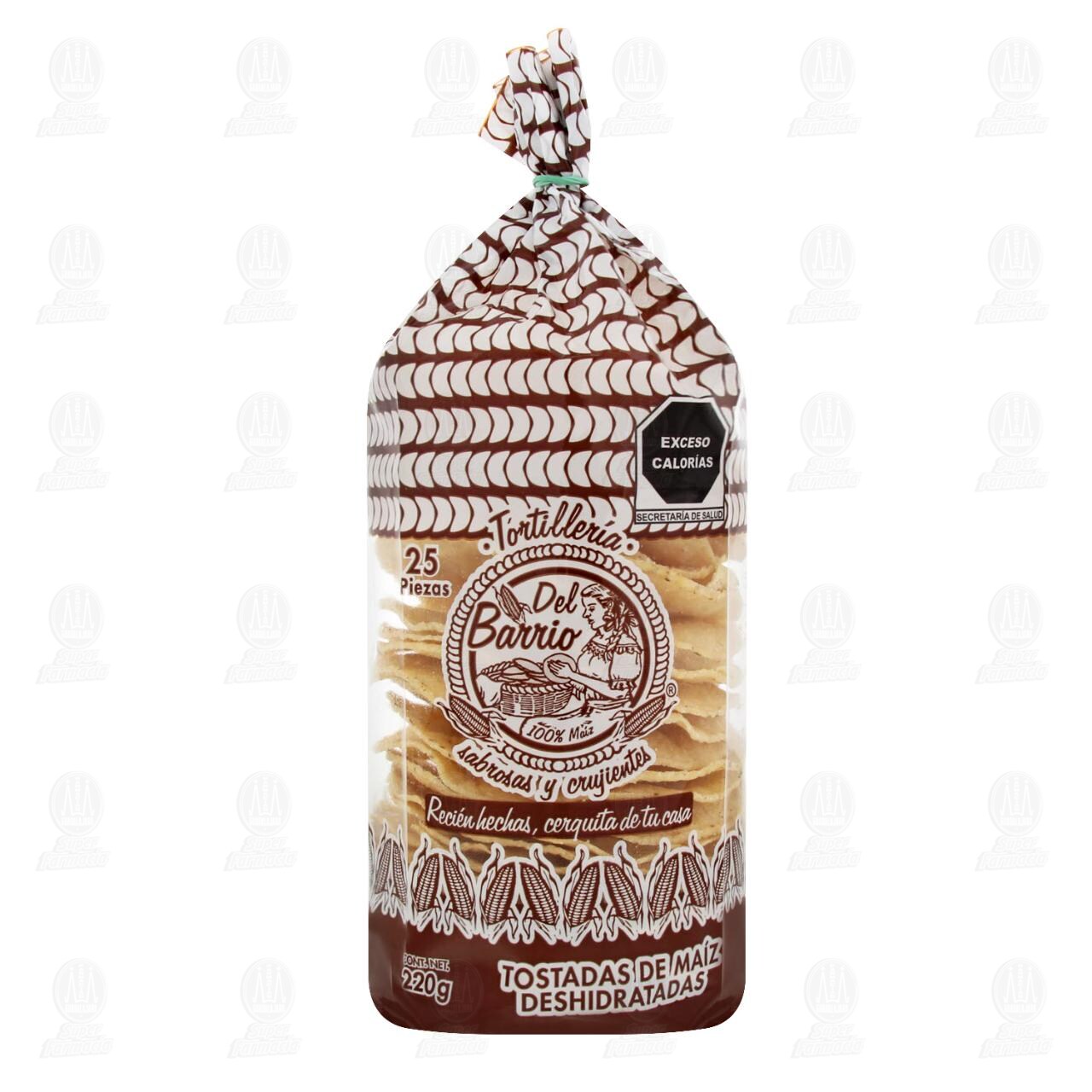 Tostadas de maíz del Barrio deshidratadas, sabrosas y crujientes. Bolsa de 220 gramos con 25 piezas.